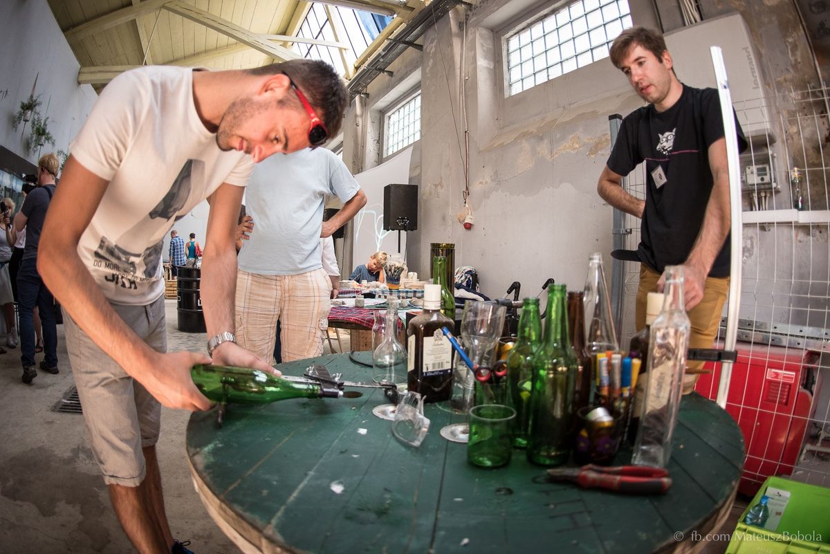 Aby przybliżyć mieszkańcom Gliwic ideę Warsztatu Miejskiego, pozyskać nowych członków ekipy, wspólnie wymarzyć wizję i zaprojektować przestrzeń, zorganizowaliśmy jednodniowe wydarzenie – festiwal dla miłośników rękodzieła i rzemiosła. Zaprosiliśmy kilku „dawców” – znajomych majsterkowiczów, aby na swoich stanowiskach poprowadzili otwarte warsztaty: ceramiczne, dziewiarstwa, upcyklingu – przerabiania starych ubrań na wypełnione styropianowym groszkiem siedziska, cięcia butelek, wytwarzania gadżetów dla rowerzystów.